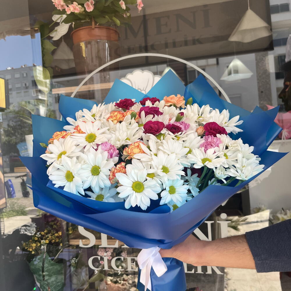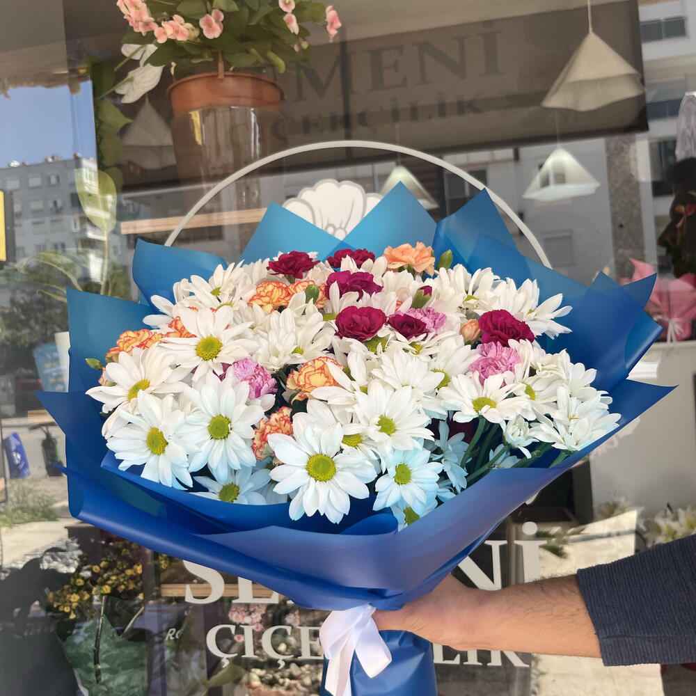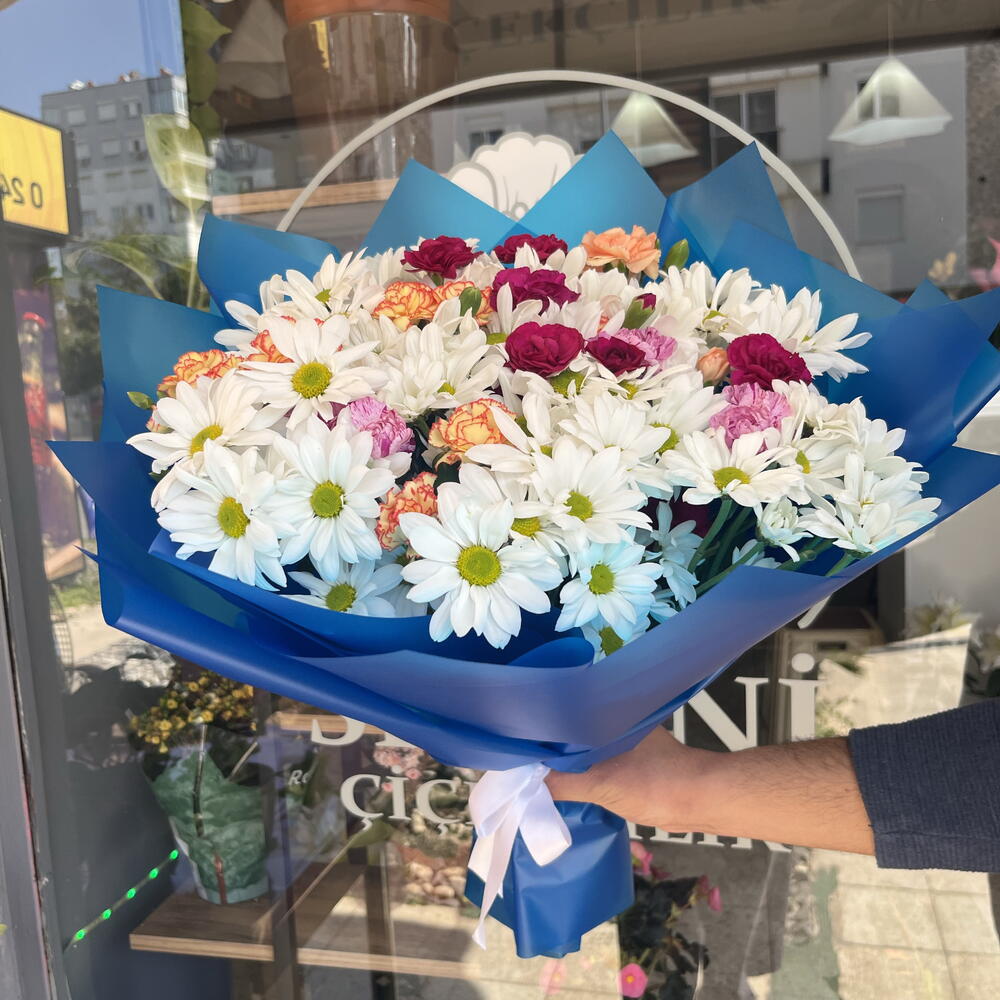 karanfil - 10 adet beyaz papatya - 40 adet