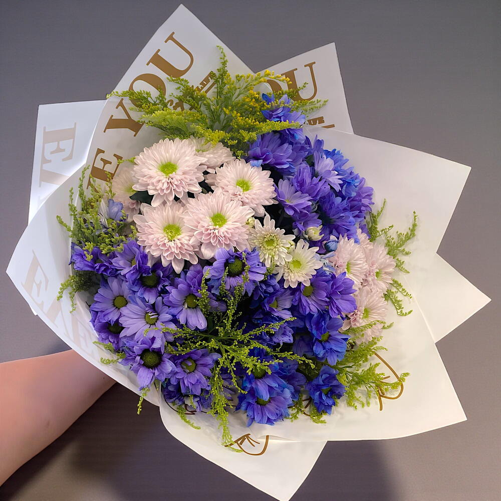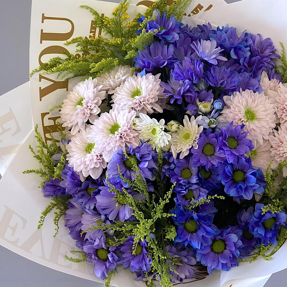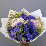 solidaster - 5 adet mavi papatya - 3 adet pembe krizantem - 2 adet