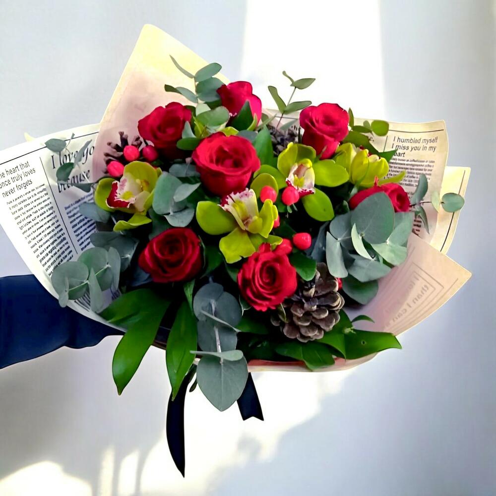 Romantik Kırmızı Gül ve Orkide Buketi, sevgi ve zarafeti bir araya getiren özel bir tasarımdır. İçeriğinde 10 adet ithal kırmızı gül, 3 adet orkide çiçeği, okaliptüs yaprakları ve doğal çam kozalakları bulunur. Kırmızı güllerin derin rengi, orkide çiçeklerinin zarafeti ve doğanın yeşil tonları ile hazırlanan bu buket, her türlü özel gün için mükemmel bir hediye seçeneğidir. Buket, hem romantik bir dokunuş hem de doğanın huzur verici etkisini yaşam alanlarınıza taşır. Bakım Önerileri: İthal kırmızı güllerin ve orkide çiçeklerinin uzun süre taze kalabilmesi için doğrudan güneş ışığından uzak, serin bir ortamda tutulması önemlidir. Çiçeklerinizi düzenli olarak sulayın, ancak fazla su vermemeye dikkat edin. Ayrıca, saksıdaki su seviyesinin yeterli olduğundan emin olun. Buketinizi düzenli olarak suya koyarak ve çiçeklerinizi taze tutarak uzun süre sağlıklı kalmalarını sağlayabilirsiniz.