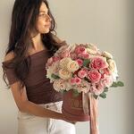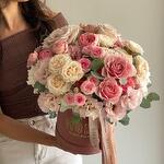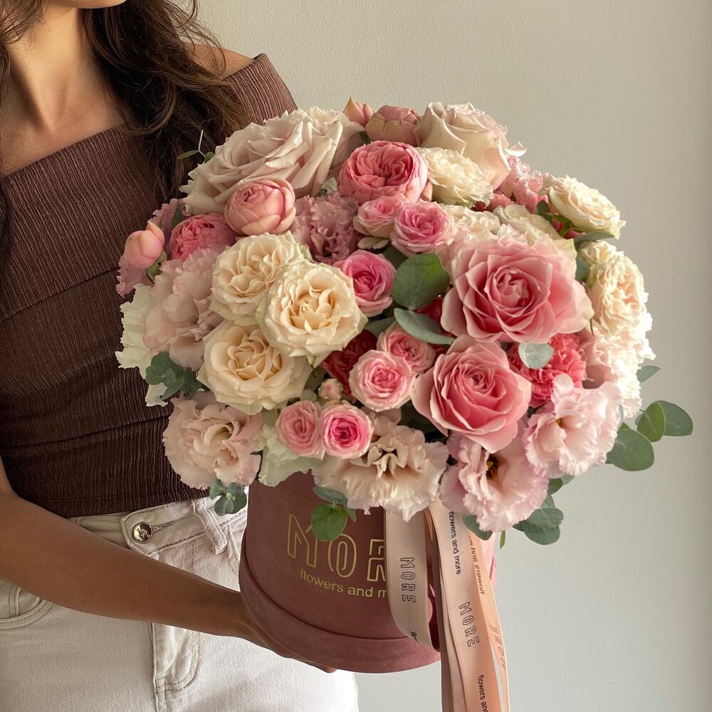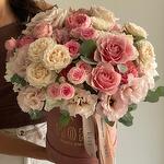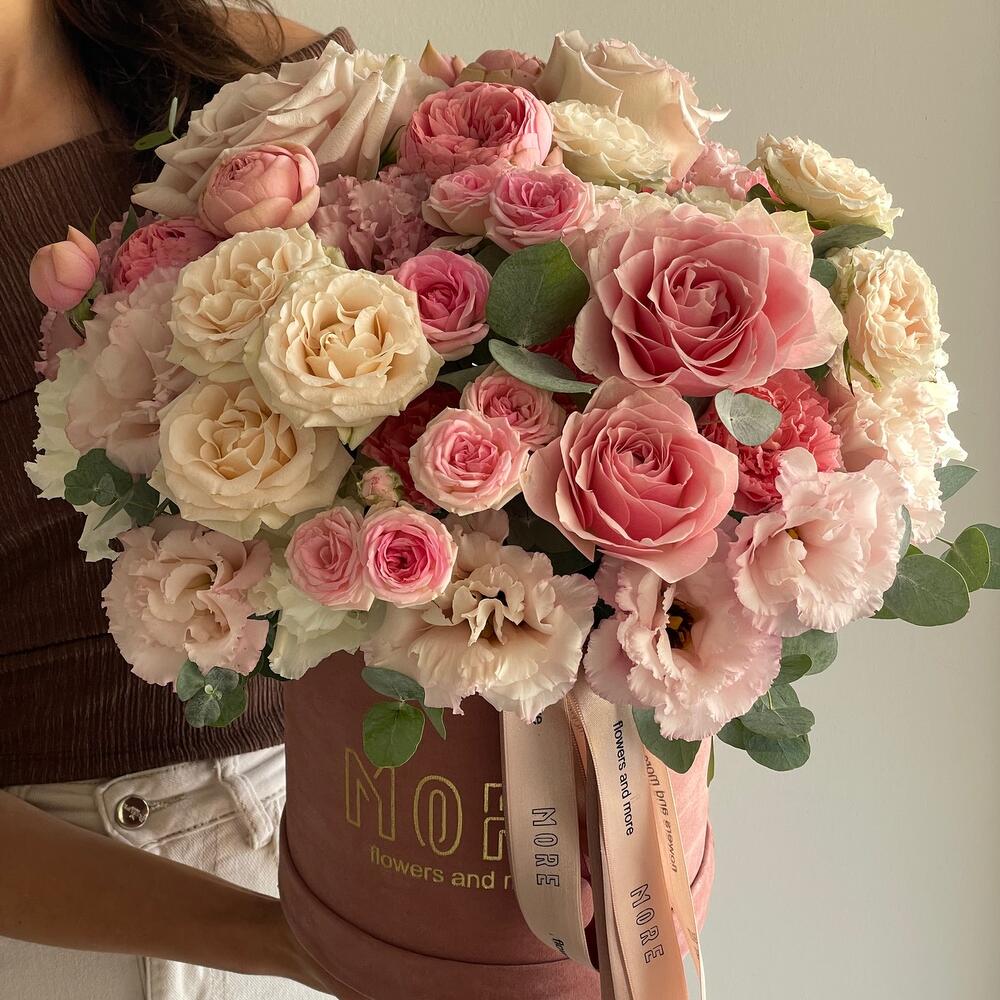 Lisianthus - 4 adet rose spray - 4 adet gül şakayık - 3 adet evkalipt - 2 adet Ekvador gülleri - 2 adet