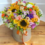 Bu zarif kutu buket, doğanın en güzel renklerini bir araya getiriyor. Güneşin parlak sarısından, lavantanın narin tonlarına kadar uzanan renk yelpazesi, her bakışta sizi büyüleyecek. Ay çiçeklerinin sarı neşesi, güllerin şıklığı ve krizantemlerin zarafetiyle tasarlanan bu buket, evinizde ya da ofisinizde canlılık yaratacak. Lisyantüslerin ve yeşil top çiçeklerinin eklenmesiyle renkler birbirini tamamlıyor. Hem romantik hem de enerjik bir atmosfer sunan bu kutu buket, sevdiklerinize özel bir hediye olarak mükemmel bir seçenek. Kutusuyla birlikte gelen bu tasarım, şıklığı ve estetiğiyle her anınıza değer katacak.