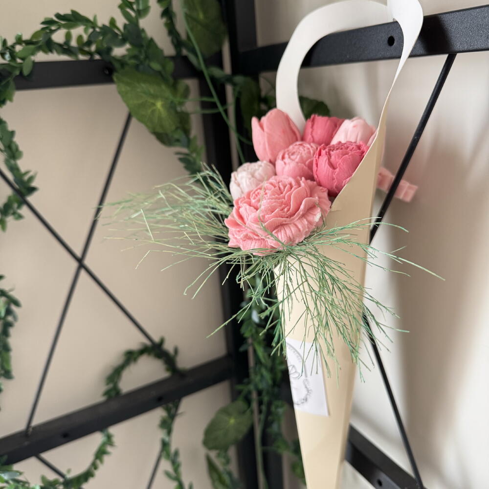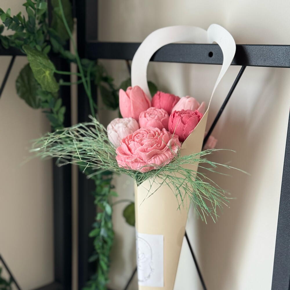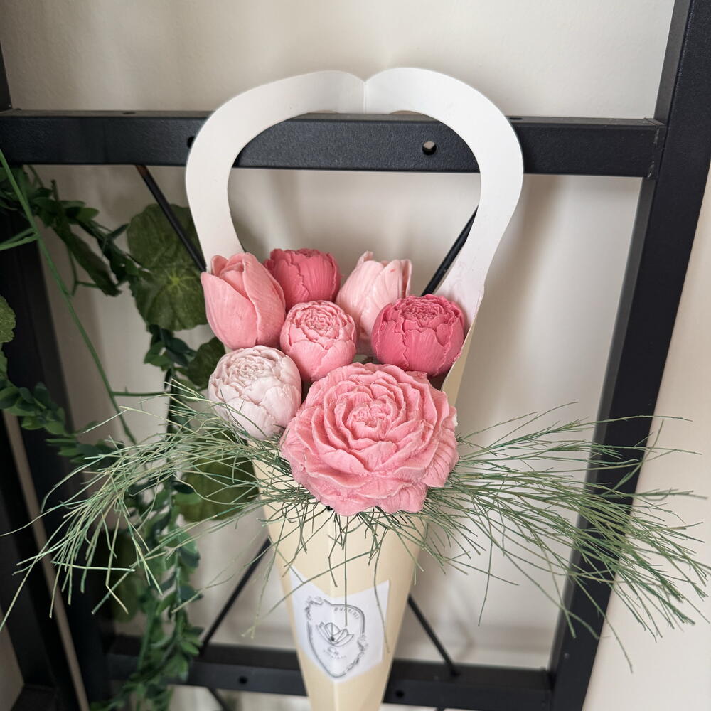 Sabundan yapılmış bir çiçek buketi olan bu ürün, hafif ve mis gibi kokusuyla evinize ya da ofisinize farklı bir atmosfer katmak için tasarlandı. Sadece bir parça olarak değil; aynı zamanda doğum günleri, yıldönümleri, sevgililer günü veya özel herhangi bir gün için ideal bir hediye olarak da tercih edebilirsiniz. Kokusu onsuz bir ev hayal edemeyeceğiniz kadar kalıcıdır. Zarif ve sofistike tasarımı ile bu sabun buketi her ortama uyum sağlar.