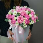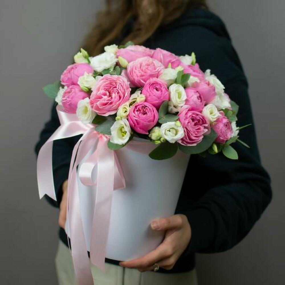 Şakayık Gulu ve Beyaz Eustoma Şapka Kutusu