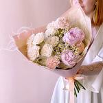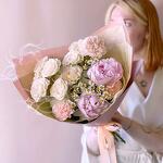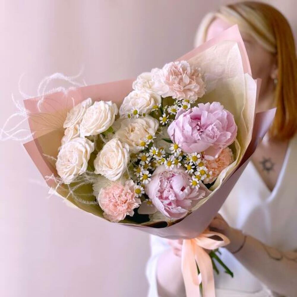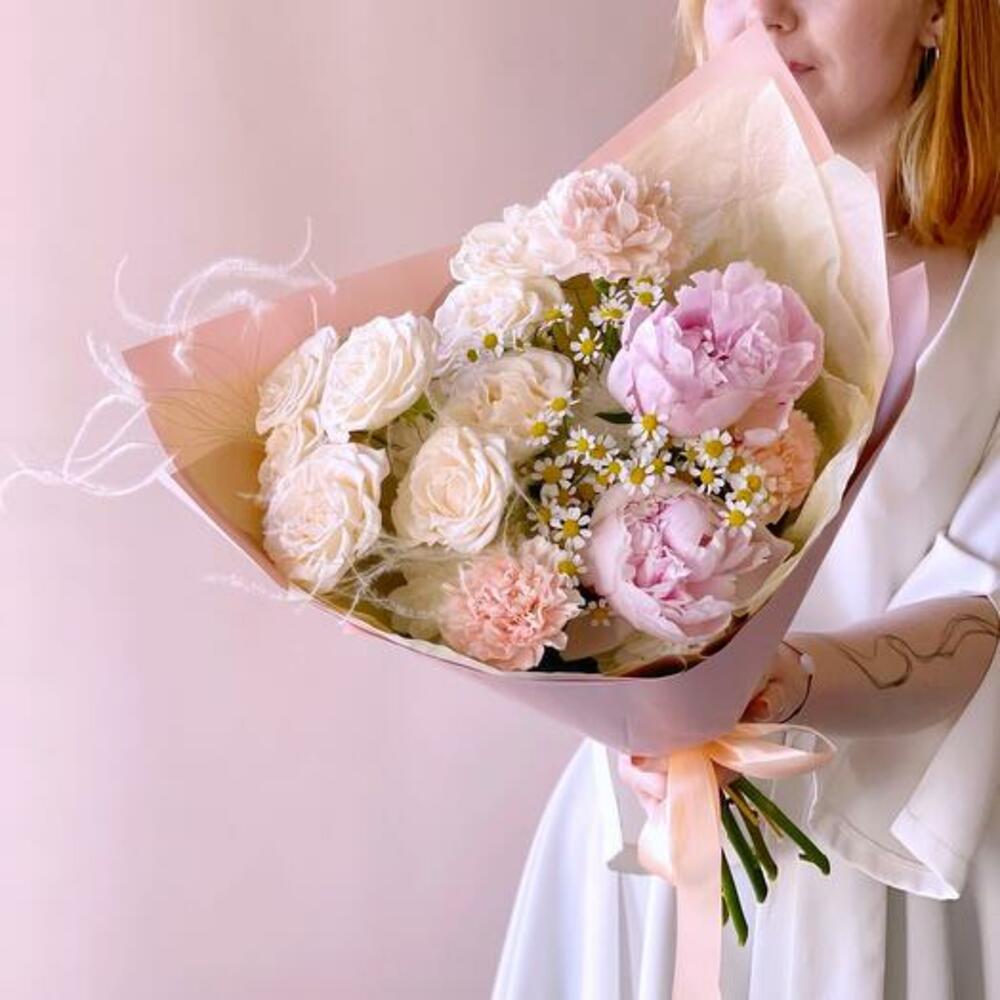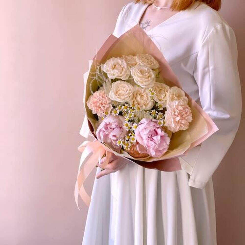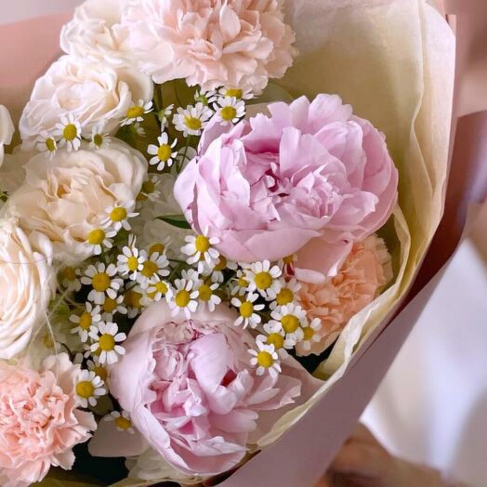 Pembe Sarah Bernard şakayıkları, papatyalar ve sprey güllerden oluşan narin kokulu buket. Buket, büyüklüğüne rağmen yaz havası ve mükemmel narin rengiyle sizi memnun edecek. Şakayık mevsimi kısa sürüyor, bu çiçeklerin tadını çıkarmak için zaman ayırmanızı şiddetle tavsiye ederiz.