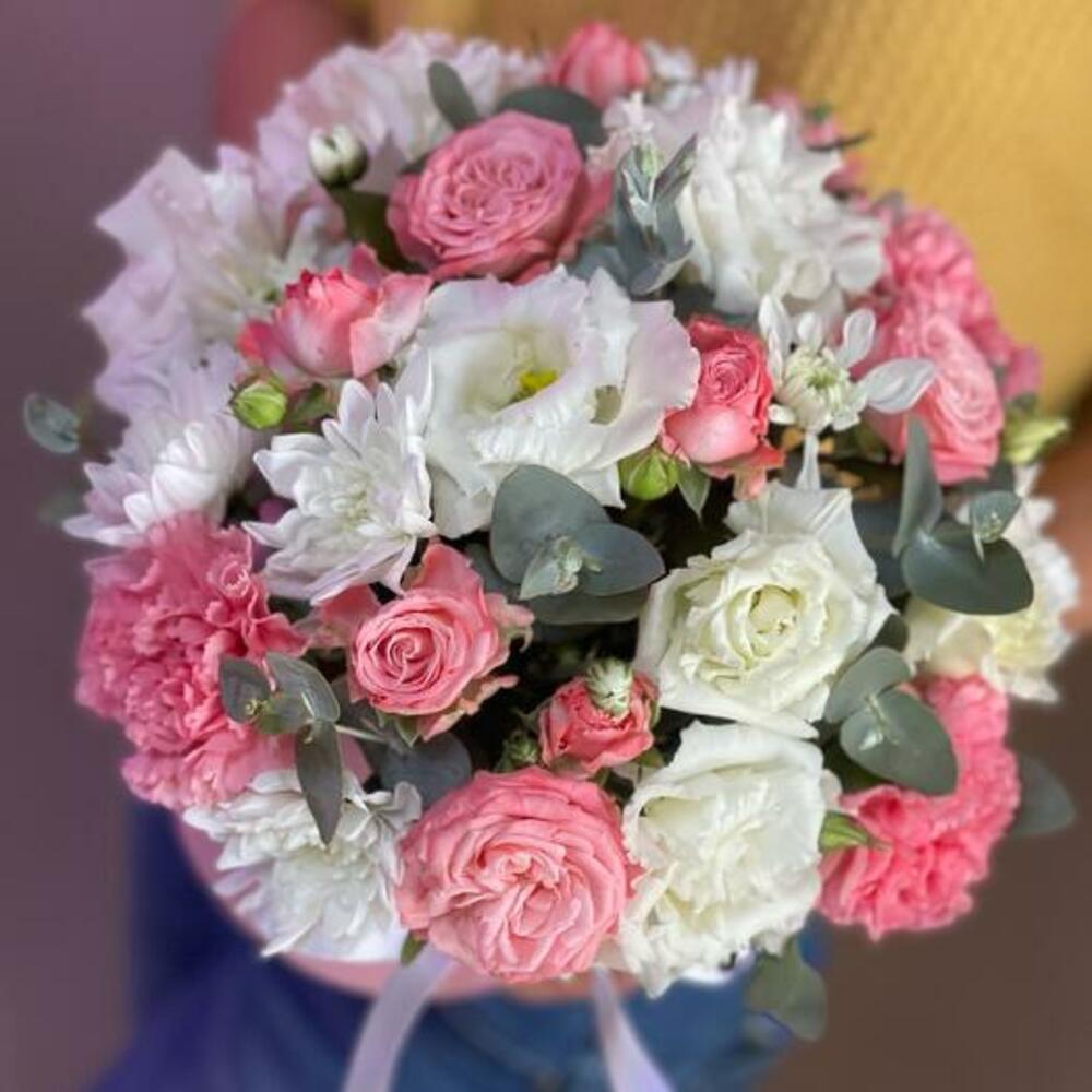 Pembe güller, beyaz krizantemler, pembe dianthuslar ve beyaz eustomaların enfes bir karışımı olan buketimizin büyüleyici zarafetini keşfedin. Bu enfes aranjman, pembenin yumuşak, romantik tonlarını beyazın saf, bozulmamış tonlarıyla güzel bir şekilde dengeleyerek uyumlu ve sofistike bir görüntü yaratır. Her durum için mükemmel olan bu buket, evinize zarafet ve çekicilik katar veya özel biri için düşünceli bir hediye olur.