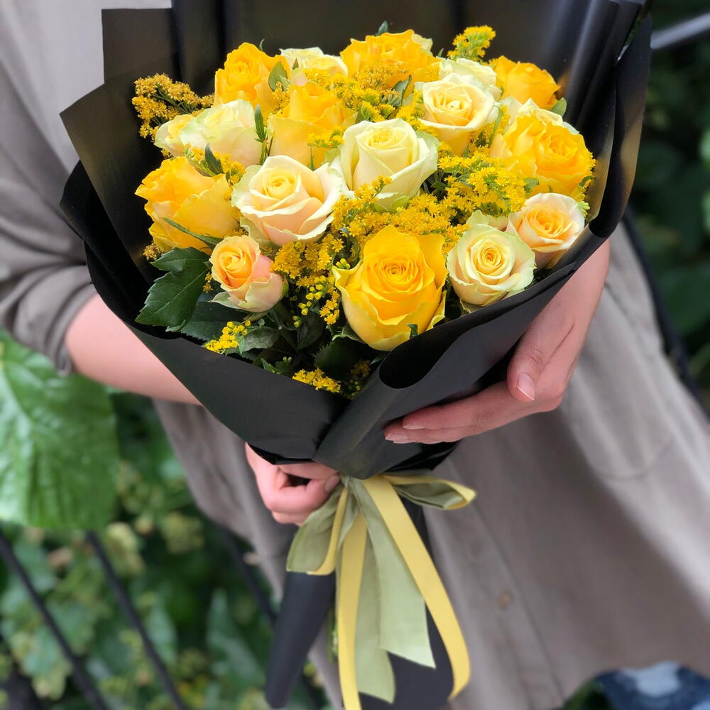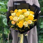 Solidago - 10 adet sarıgül - 10 adet krem gül - 10 adet