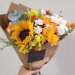 Güneş ışığını andıran sıcak tonlarıyla bu zarif buket, bulunduğu her ortama neşe ve tazelik katar. Sarı, beyaz ve turuncunun uyumlu dansı, doğanın canlı enerjisini evinize taşır. Ayçiçeğinin dikkat çekici güzelliği ve krizantemlerin dolgun dokusu ile dengeli ve göz alıcı bir kompozisyon oluşturur. Özenle seçilen yeşillikler bukete doğal bir hareket ve ferahlık hissi kazandırır. Doğum günleri, teşekkür hediyeleri, yeni iş tebriği, geçmiş olsun ziyaretleri ve içten bir “seni düşünüyorum” mesajı için mükemmel bir seçimdir. Buketin tazeliğini korumak için temiz bir vazoda serin su kullanılması, suyun 2 günde bir değiştirilmesi ve sapların her değişimde hafifçe kısaltılması önerilir. Doğrudan güneş ışığından ve ısı kaynaklarından uzak tutulduğunda uzun süre canlılığını koruyarak keyifle seyredilecek şık ve samimi bir aranjmandır.