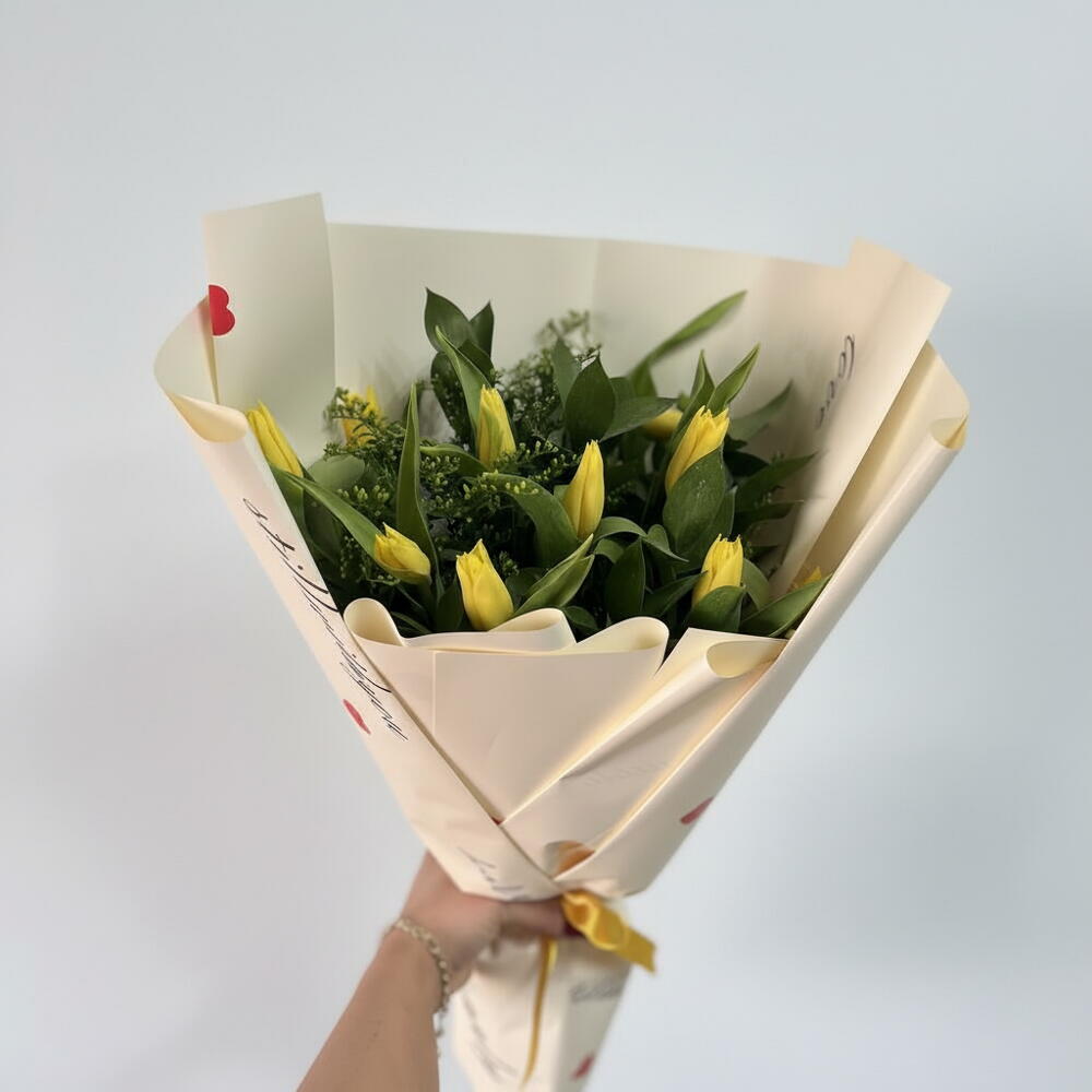 🌼 Güneş Işığı Sarı Lale Buketi 🌼 Canlı sarı laleler, adeta güneşin sıcaklığını ve neşesini taşır. Taptaze görüntüsü ve enerjik rengiyle bulunduğu her ortamı aydınlatan bu buket, umut, mutluluk ve yeni başlangıçların sembolüdür. Doğum günü, tebrik, teşekkür ya da sadece yüzlerde gülümseme yaratmak için ideal bir seçim. Sarı laleler ile sevdiklerinize pozitif enerji ve içten dileklerinizi armağan edin. 💐 Not: Sarı lale; dostluğu, samimiyeti ve neşeyi ifade eder.