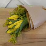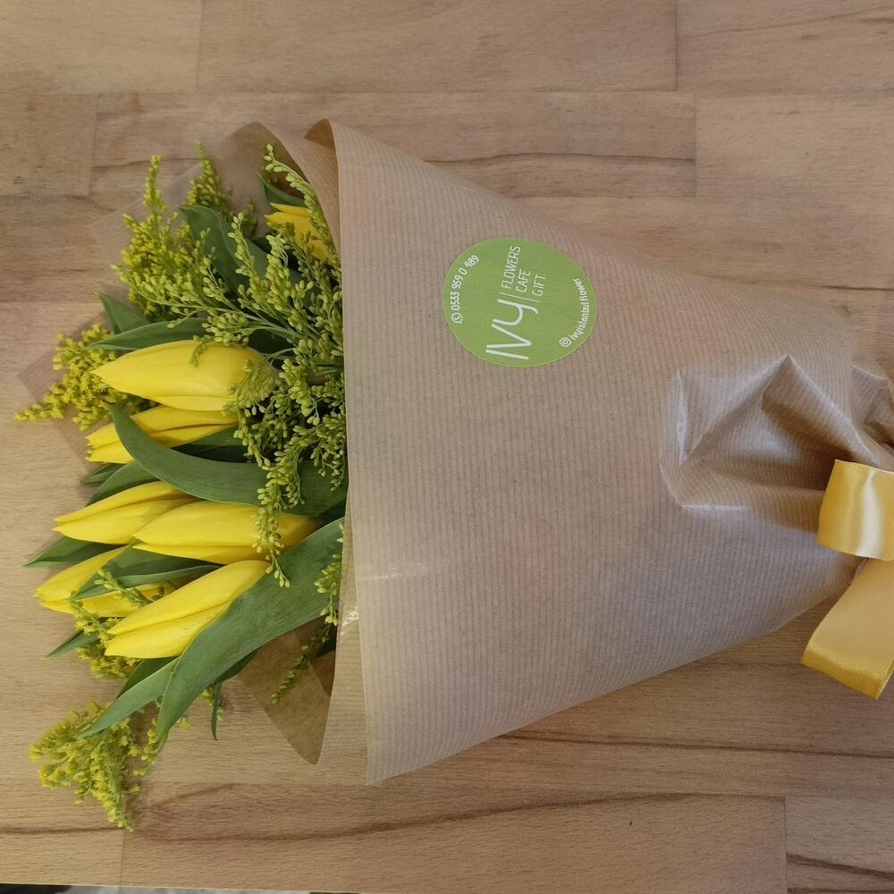 Solidago - 3 adet kraft paper wrapping - 1 adet sarı lale - 7 adet not kartı - 1 adet