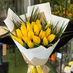 Kraft ve beyaz ambalaj kağıdıyla süslenen, rubbelini yapraklarıyla dekore edilen sıcak sevginin ifadesi sarı laleler, sade ve zarif buketiyle sevdiklerinize gönderilmeye hazır, İstanbul içinde 3 saatte çiçek teslimatları yaıyoruz.