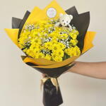 15 adet canlı sarı papatya, 4 adet şık cipso ve tatlı bir ayıcık ile süslenmiş zarif bir çiçek buketi. Bu muhteşem buket, sevdiklerinizin yüzündeki tebessümü kesinlikle genişletecek. İster özel bir günü kutlamak, ister sadece günlerini aydınlatmak için, bu çiçek buketi mükemmel seçimdir.