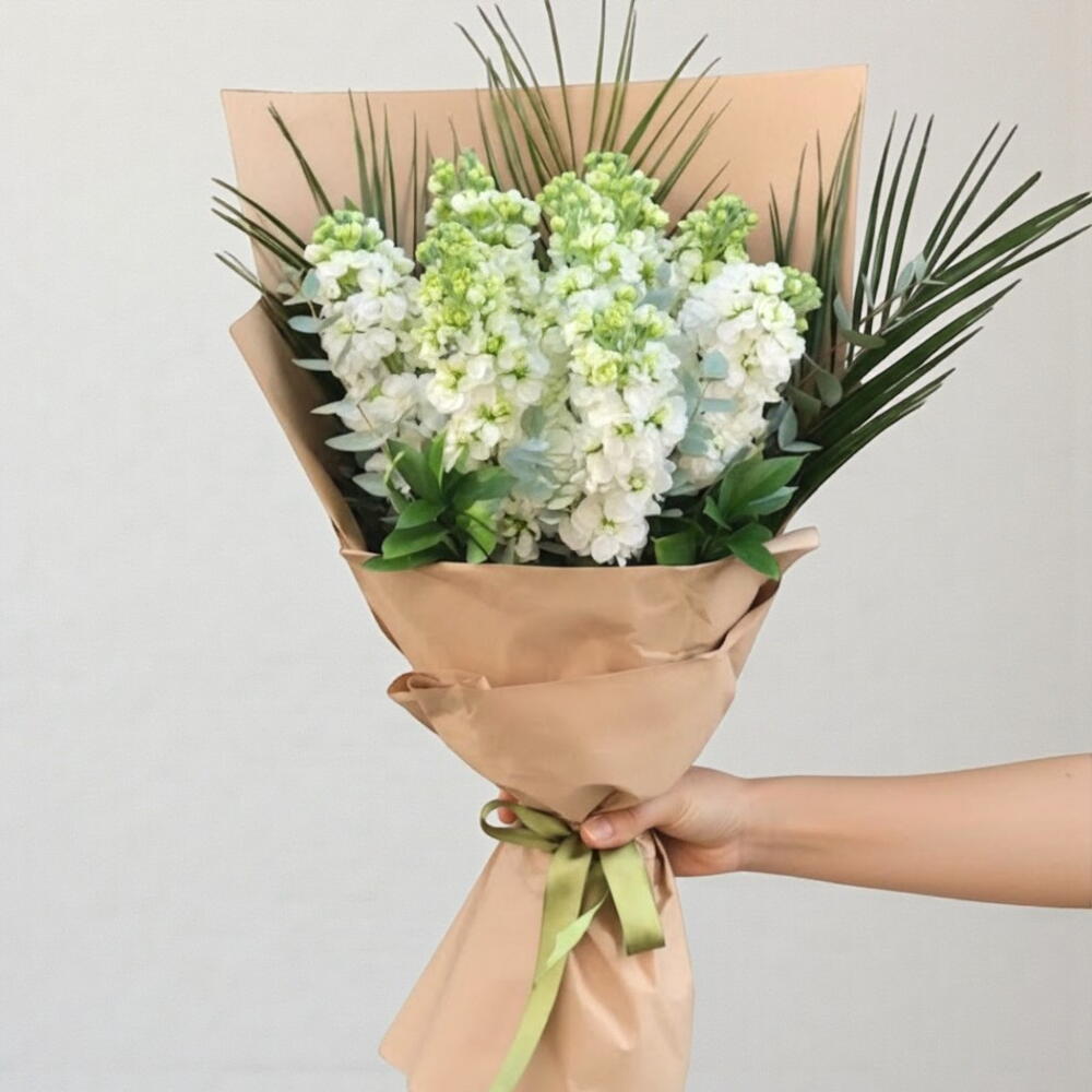 Bu zarif çiçek buketi, romantizmin ve zarafetin mükemmel kombinasyonudur. Buket, 9 adet beyaz Sebboy çiçeği ve 3 adet yeşil Fenix ile özenle hazırlanmıştır. Çiçek kompozisyonu, 2 adet paket süsleme ve 1 adet kurdela ile şık bir şekilde tamamlanmaktadır. Bu çiçek buketi, her tür özel gün veya sıradan bir günü bile olağanüstü bir gün yapabilir. Buketinizi taze tutmak için düzenli olarak suyunuzu değiştirin ve doğrudan güneş ışığından uzak tutarak uzun süre canlı kalmasını sağlayın. Herhangi bir özel gün için mükemmel bir hediye seçeneği!