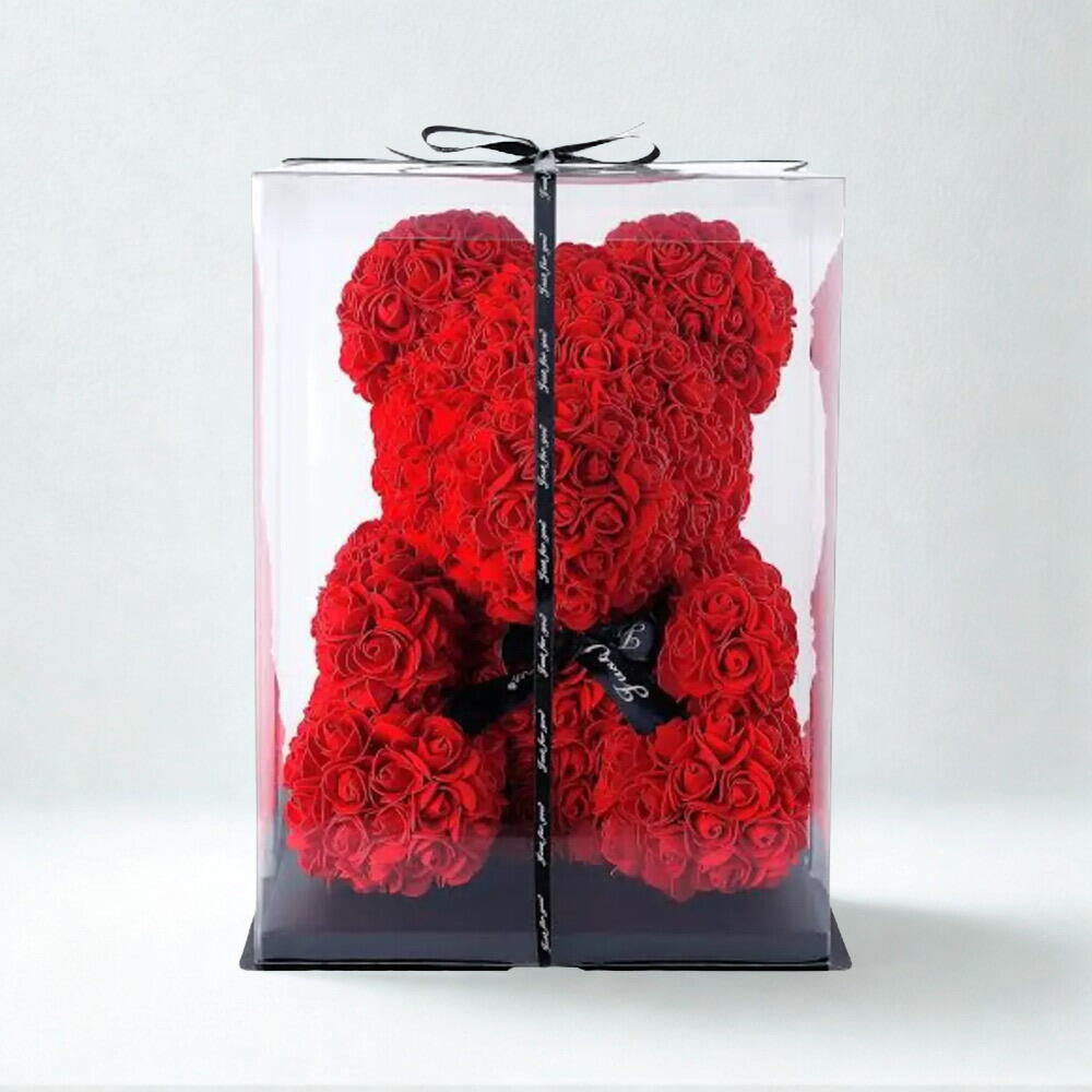 Şeffaf Kutuda Teddy Rose Kırmızı Ayıcık (~45cm)