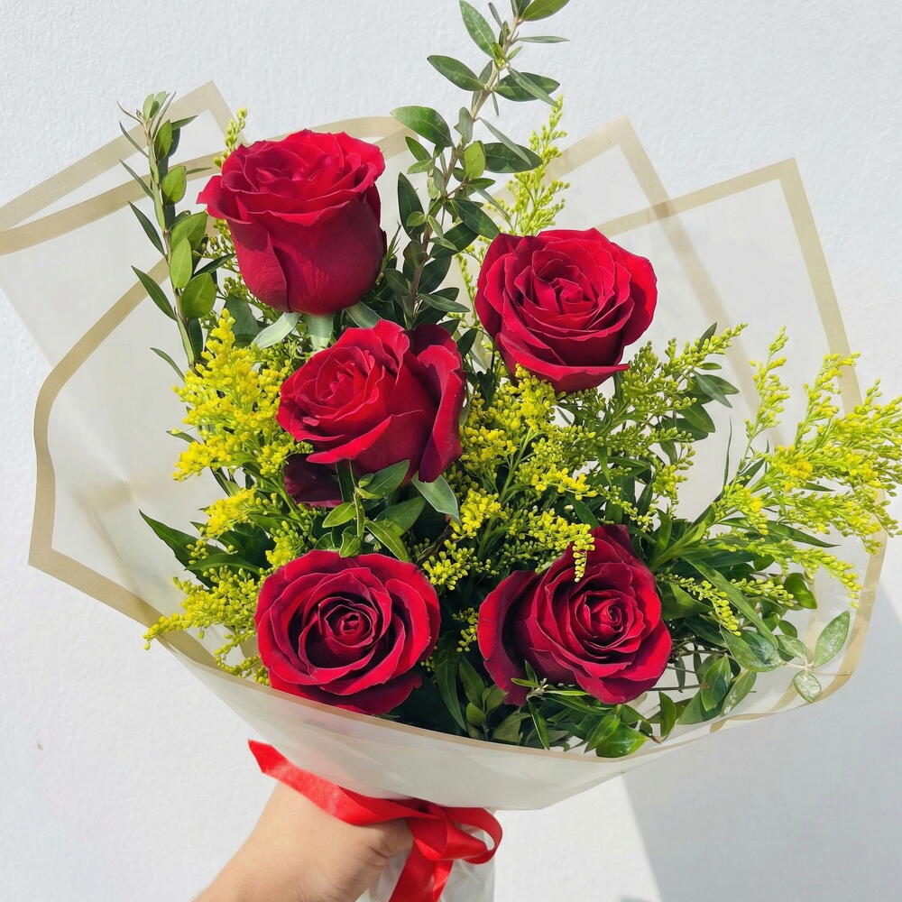 Aşkın en saf hali… Canlı kırmızı güller, taze yeşillikler ve zarif sarı dolgu çiçekleriyle birleşerek romantik ve sıcak bir buket oluşturur. Büyük sözler söylemeden duygularınızı anlatmanın en şık ve ekonomik yoludur. Sevdiğinize küçük ama anlamlı bir sürpriz yapmak, kalpten gelen bir “seni seviyorum” demek için ideal bir seçimdir. Uygun fiyatlı olmasına rağmen özenle hazırlanır ve şık bir şekilde sunulur. Buketiniz Belek, Kadriye ve Boğazkent bölgelerine aynı gün ve zamanında teslim edilir.