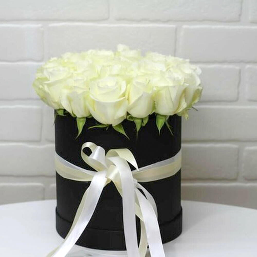 Eşsiz bir zarafet ve saf güzelliğin simgesi olan 25 adet beyaz gül, siyah silindir kutusunda şıklığı ile göz kamaştırıyor. Bu özel kutuda çiçekler, sevdiklerinize derin sevginizi ve hayranlığınızı ifade etmek için ideal bir seçim. Son derece taze ve kaliteli beyaz güller, uzun süre dayanıklılığı ve taptaze görünümleri ile dikkat çekiyor. Kutuda çiçekler, hem göz alıcı bir görünüm, hem de kalıcı bir hediye sunuyor.