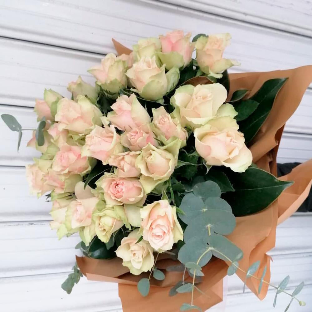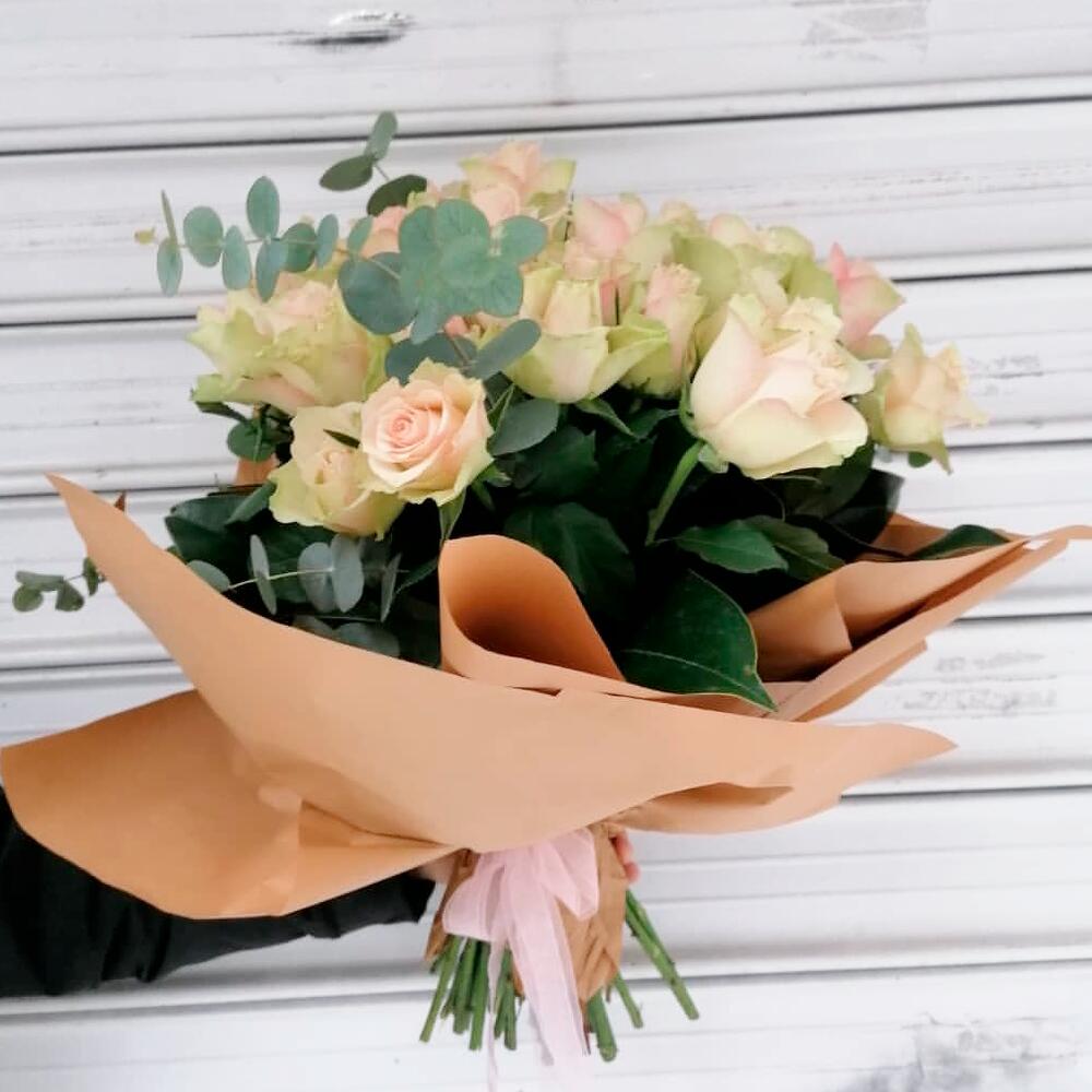 Bu zarif ve şık gül buketi, pembe ve beyaz tonlarının mükemmel uyumunu sunar. Her biri özenle seçilmiş ve özenle yerleştirilmiş olan bu güller, herhangi bir kutlama veya özel gün için mükemmel bir hediye seçeneğidir. Buket, güzel yeşil eukaliptüs dalları ile zenginleştirilmiş ve oldukça taze bir görünüm kazanmıştır. Buketin doğal ve ferah havası, hem duygusal hem de estetik açıdan tatmin edicidir. Bu buket, sevgi ve saygıyı ifade etmek için ideal bir tercihtir. Buketinizi taze tutabilmek için düzenli olarak su değişimi yapın ve çiçeklerinizi doğrudan güneş ışığından uzak tutun. Su, çiçeklerin gövdesine değmemelidir. Ayrıca, her 2-3 günde bir sap uçlarını kesmek, güllerin uzun süre taze kalmasını sağlar.