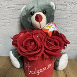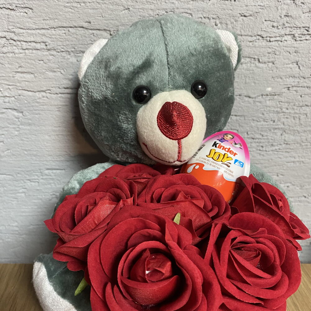 Kinder chocolate - 1 adet kırmızı gül - 7 adet ayıcık - 1 adet