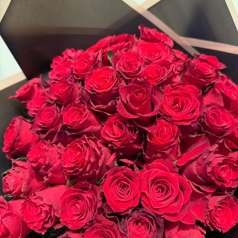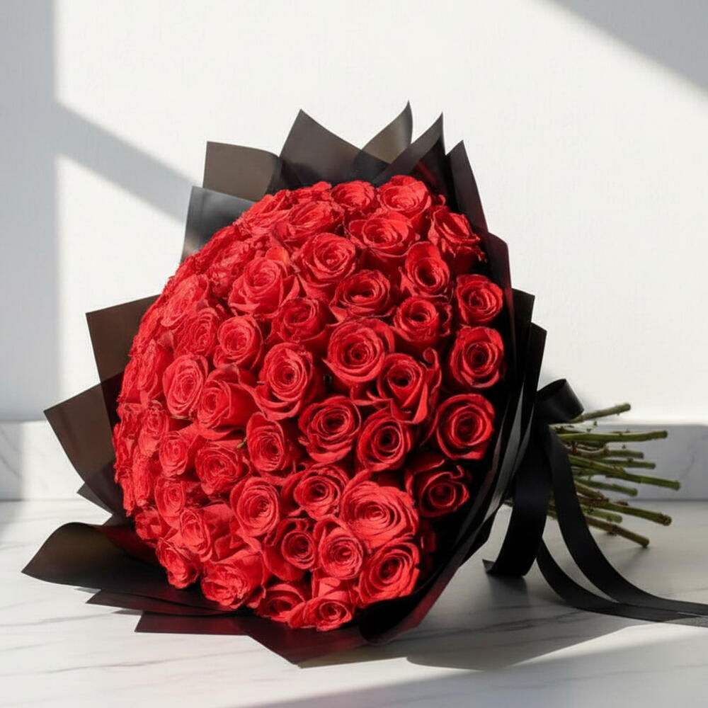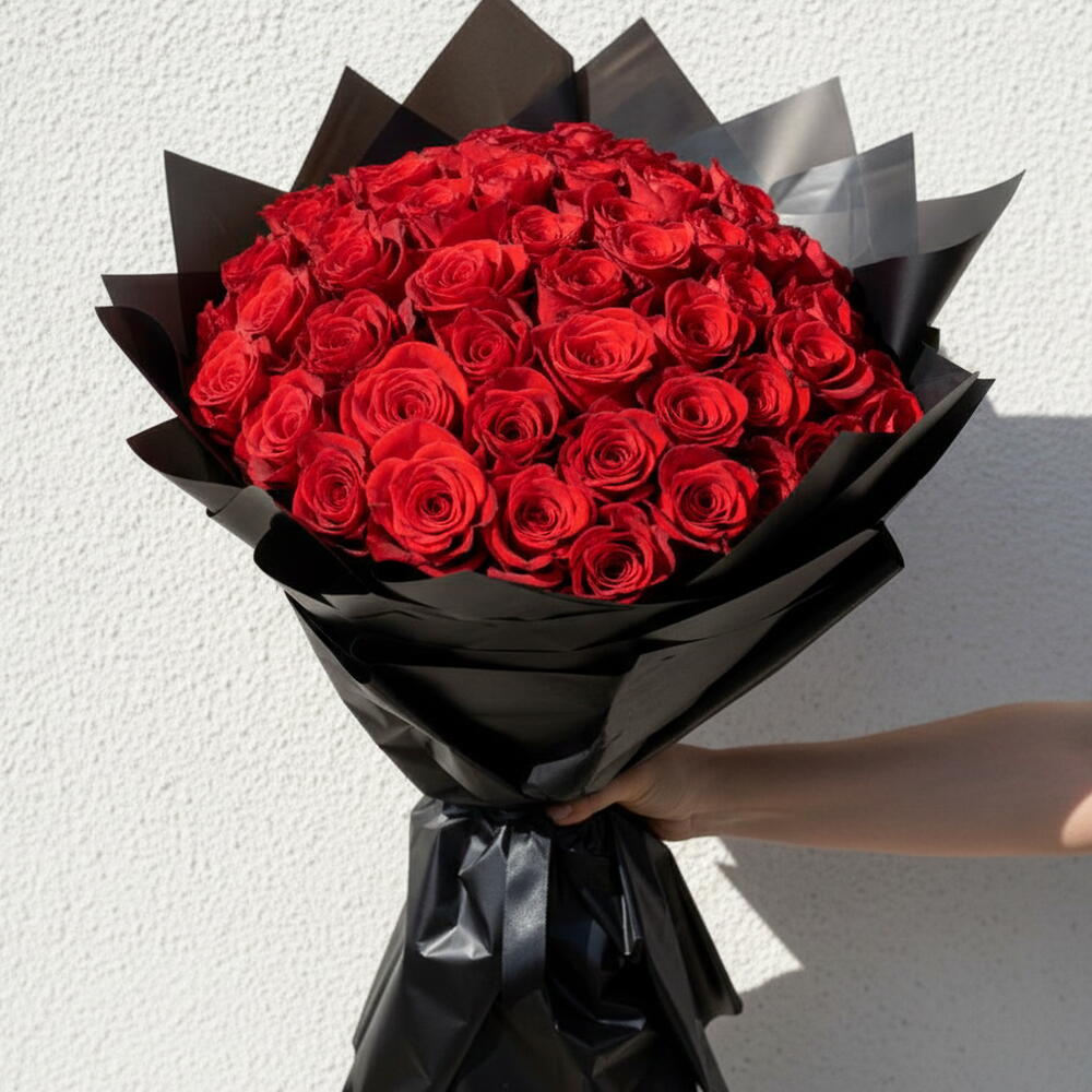 Siyah Ambalaj Kağıdında 60 Kırmızı Gul Buketi
