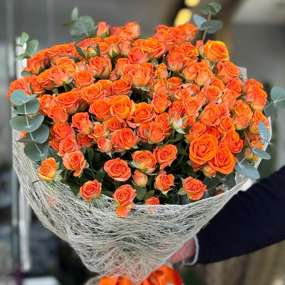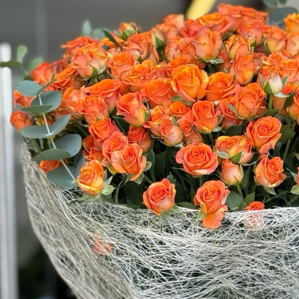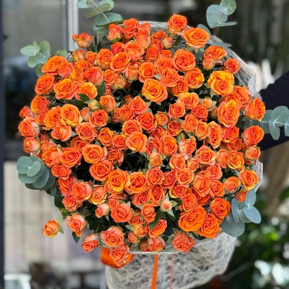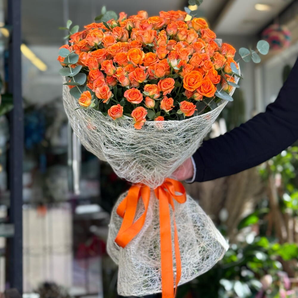 Smashing Spray Roses, canlı turuncu tonları ve bir dal üzerinde açan çoklu tomurcuk yapısıyla öne çıkan premium bir sprey gül çeşididir. Dayanıklı yapısı, uzun süre taze görünümü ve yüksek çiçek yoğunluğu sayesinde hem zarif hem de gösterişli buketler oluşturur. Modern dokusuyla enerjiyi, sıcaklığı ve neşeyi simgeleyen Smashing Spray Roses; doğum günü, kutlama, teşekkür, terfi ya da özel sürprizler için etkileyici bir hediye seçeneğidir. Doğal okaliptus eşliği ve sade ambalajıyla her ortamda dikkat çeken, modern bir çiçek tasarımı sunar.