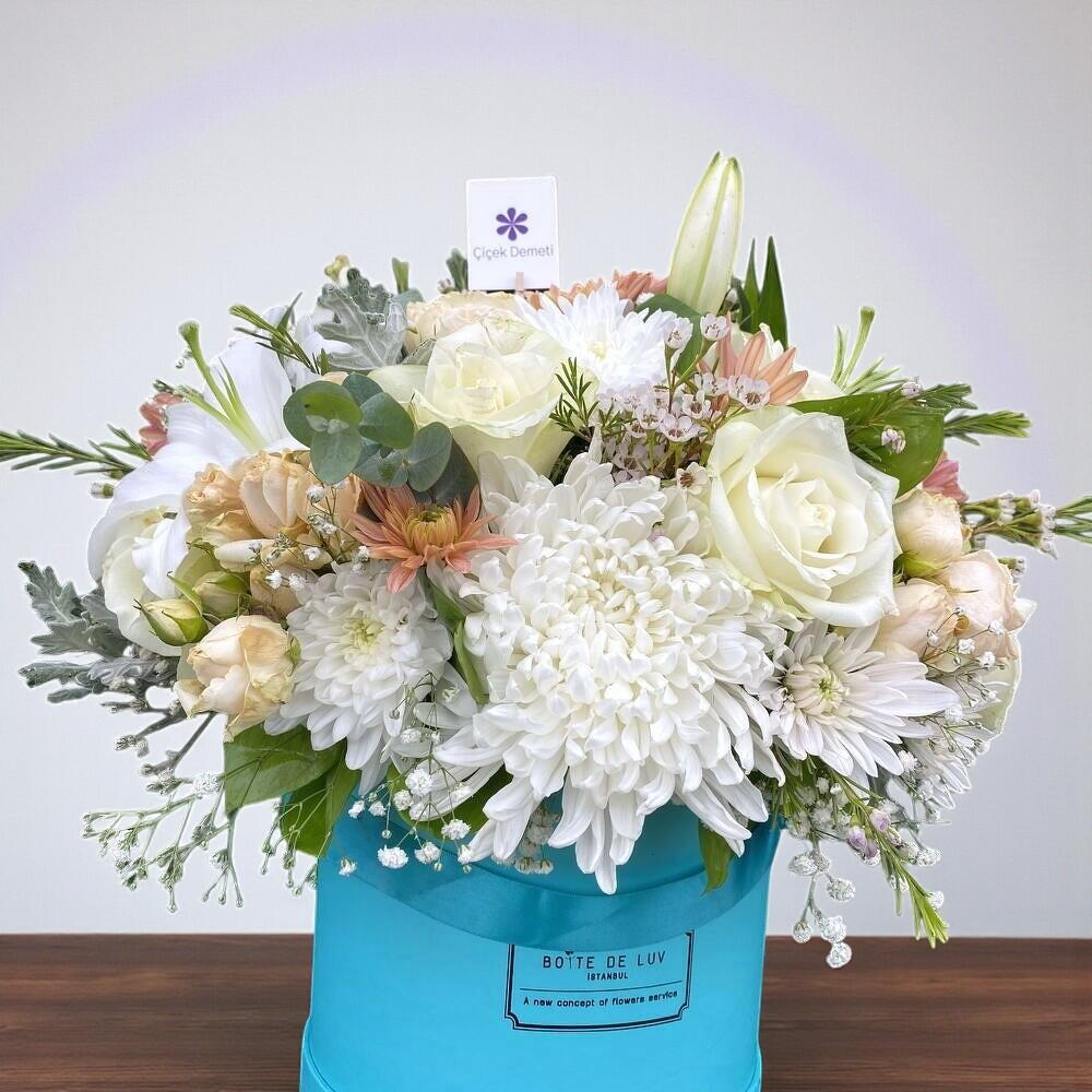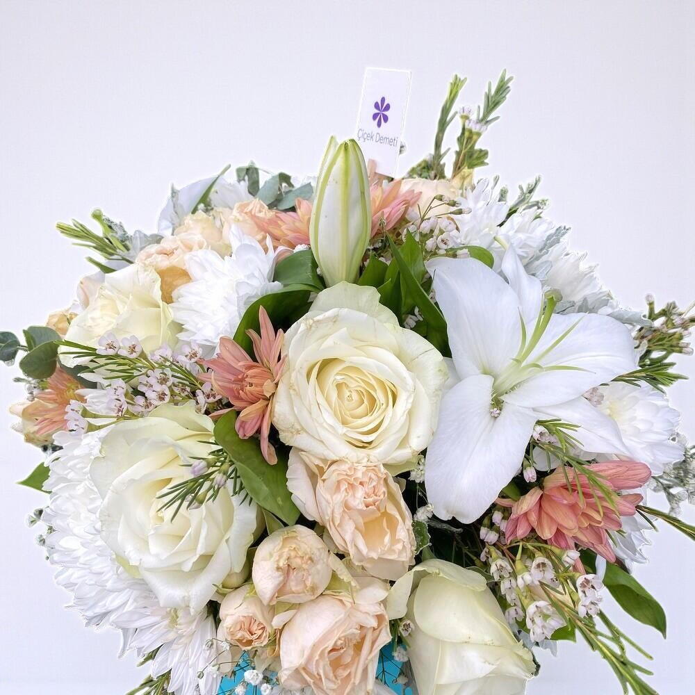 Casablanca lilium, 5 adet chamelacıum, 2 adet asistazya ve 10 adet chrysanthemum içerir. Farklı türde ve renkteki çiçekleriBu çiçek kutusu, 7 adet beyaz gül, 10 adet krem gül, 3 adet n mükemmel bir armonisini yansıtan bu kutu, tazelik ve zarafeti size ve sevdiklerinize sunmak için özenle hazırlanmıştır. İçindeki çiçeklerin her biri el emeği göz nuru olup, özel olarak seçilmiş ve düzenlenmiştir. Bu çiçek kutusu, herhangi bir özel an veya etkinlik için mükemmel bir hediye olabilir. İster doğum günü, ister yıl dönümü veya sadece bir tebrik mesajı olsun, bu kutu ile etkileyici bir izlenim bırakabilirsiniz. Çiçeklerin tazeliğini koruyabilmesi için doğrudan güneş ışığından uzak tutulmalı, çiçek süngeri düzenli olarak nemlendirilmelidir. Soğuk havadan korunmalı ve çiçekler nazikçe temizlenmelidir.