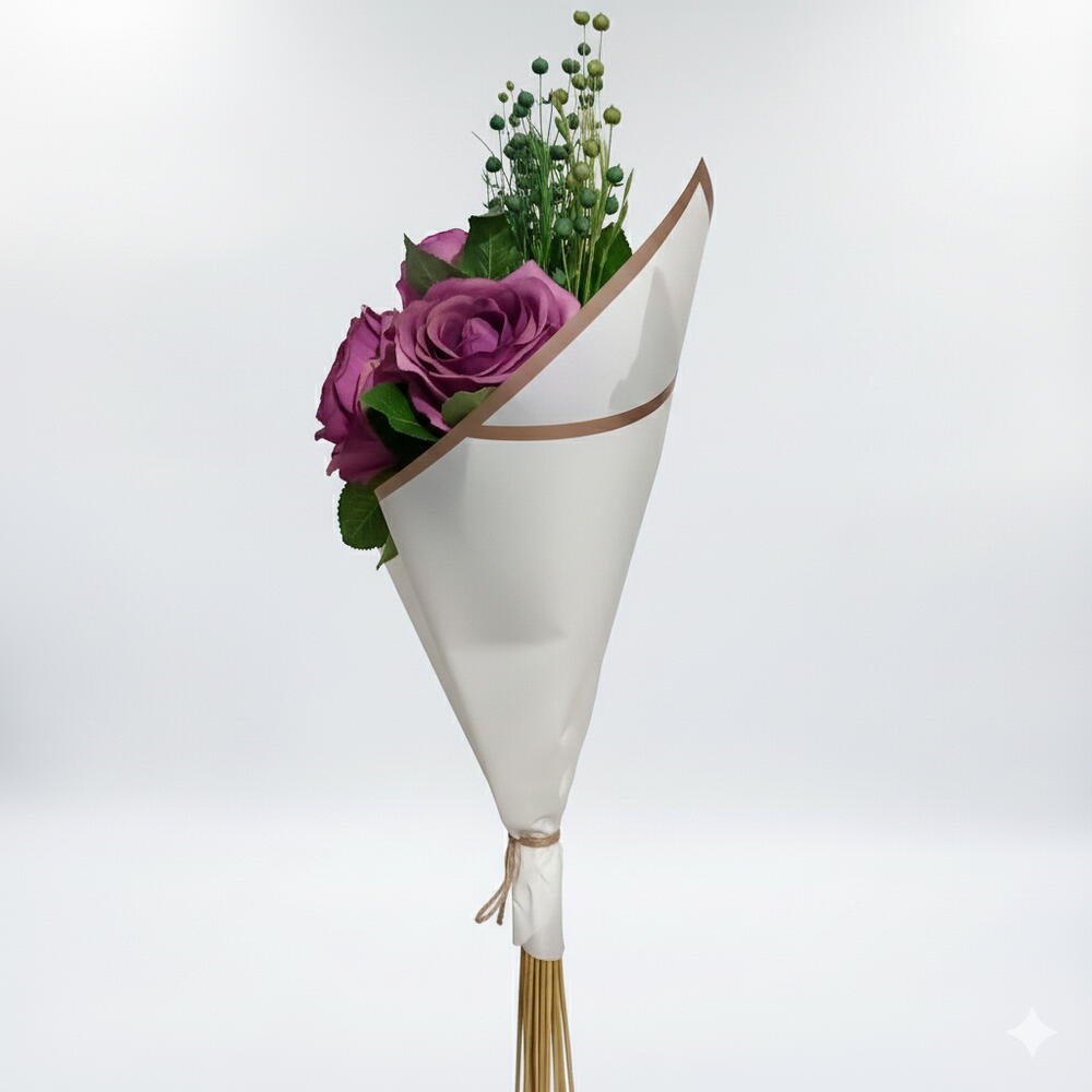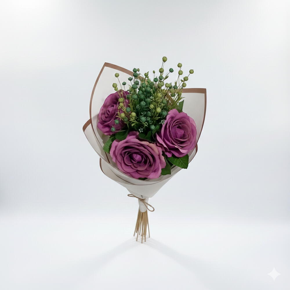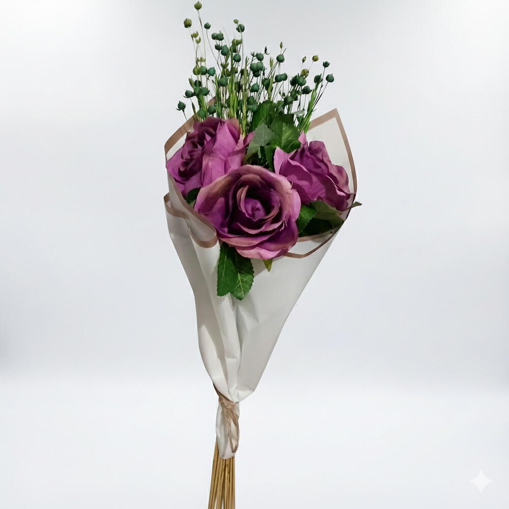 Sevdiklerinize sıradan bir çiçek değil, kalıcı bir anı hediye edin. Bu zarif buket, gül kurusu renginin asaleti ve modern ambalaj tasarımıyla birleşerek duygularınızı en şık şekilde ifade eder. Hem romantik anlar hem de özel kutlamalar için tasarlanan bu buket, bakım gerektirmeden yıllarca ilk günkü güzelliğini korur. Neden Bu Buketi Seçmelisiniz? 💜 Kalıcı Güzellik: Asla solmaz, su ve bakım istemez. 🎁 Hediye İçin Mükemmel: Doğum günü, yıl dönümü veya içimden geldi hediyesi olarak idealdir. ✨ Şık Tasarım: Gold detaylı özel ithal kağıt ambalajı ile premium bir görünüm sunar. Birinci sınıf ithal 3 adet kumaş gül ve şoklanmış kurutulmuş garnitürlerle hazırlanmıştır.. Ürün Boyutları: Yükseklik: Yaklaşık [30-35] cm Genişlik: Yaklaşık [20-25] cm