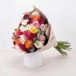 Bu rengarenk gül buketi, her duyguyu bir arada sunan eşsiz bir çiçek şöleni! Kırmızı, pembe, sarı, turuncu ve beyaz güllerin zarif uyumu, yaşamın renkli yanlarını en güzel şekilde yansıtıyor. Her bir gül taptaze, özenle seçilmiş ve sevgiyle bir araya getirilmiştir. Doğum günü, yıldönümü ya da sadece sevdiklerinizi mutlu etmek için mükemmel bir seçimdir. Modern ambalajı ve göz alıcı görünümüyle her ortama neşe ve zarafet katıyor. Bu buket, duygularınızı kelimelere gerek kalmadan anlatmanın en zarif yoludur. Sıcacık bir gülümseme ve unutulmaz bir an için ideal!