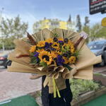 Bu harika çiçek buketi, zarif ve canlı renkleriyle göz kamaştırıyor! Güneşin Enerjisini Yansıtan Ayçiçekleri ile Bir Bütün Oluşturan Mor Detaylar Müthiş Bir Uyum Yakalıyor! Sevdiklerinizin Yüzünde Kocaman Bir Gülümseme Yaratmak İstiyorsanız Hemen Sipariş Oluşturabilirsiniz 🌻