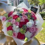 Pink rose - 20 adet dianthus - 30 adet euqualiptus - 5 adet
