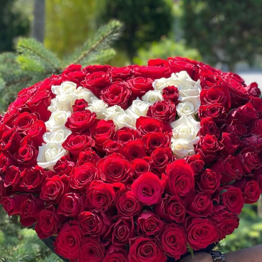 beyaz gül - 15 adet kirmizi gül - 70 adet