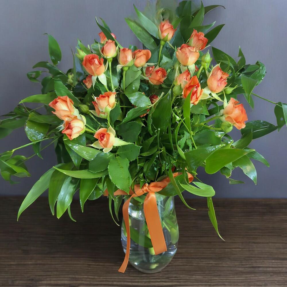 vazo - 1 adet sprey gül - 28 adet ruscus yeşillikleri - 10 adet
