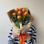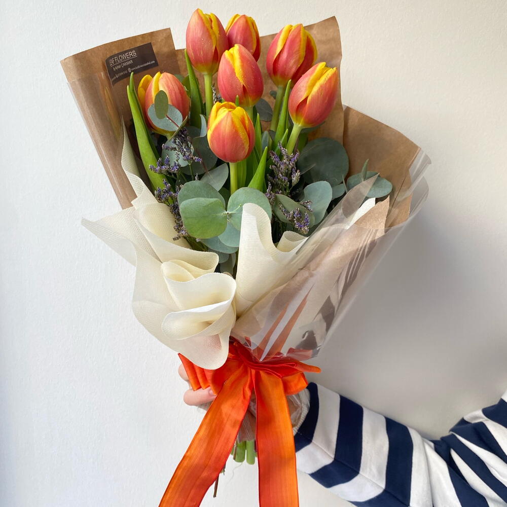 Eucalyptus - 7 adet turuncu lale - 7 adet