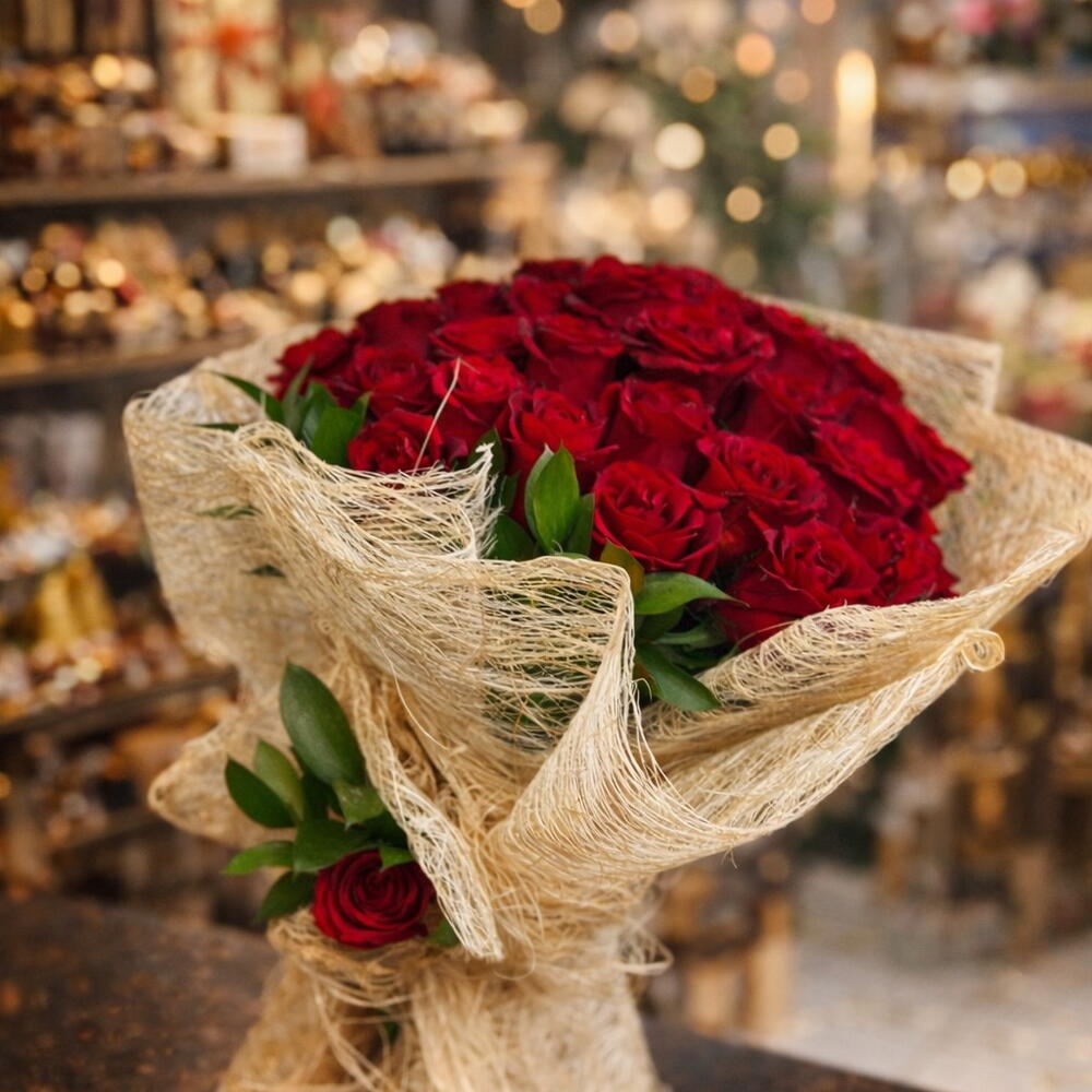 🌹 Aşkın en güzel ifadesi! Kırmızı güllerin ihtişamı ve zarif yeşilliklerin muhteşem uyumu ile hazırlanan bu özel buket, romantik bir jest yapmak isteyenler için mükemmel bir seçim.