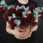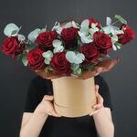 Tutkulu Güller ve Okaliptüs Şapka Kutumuz ile duyularınızı ateşleyin. Bu çarpıcı aranjmanda, zengin renkleri ve kadifemsi dokularıyla ünlü koyu kırmızı Explorer gülleri, tazelik dokunuşu için aromatik okaliptüs ile eşleştirilmiştir. Şık bir şapka kutusu içinde zarif bir şekilde sunulan bu buket, derin duyguları ifade etmek ve özel anları kutlamak için çarpıcı bir seçimdir. Yıldönümleri, romantik jestler veya sofistike bir dokunuşun arzu edildiği herhangi bir durum için mükemmel olan bu şapka kutusu aranjmanının kalıcı bir etki bırakacağından emin olabilirsiniz.