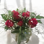 kırmızı gül - 7 adet akvaryum vazo - 1 adet yesillik cipsofilya - 11 adet