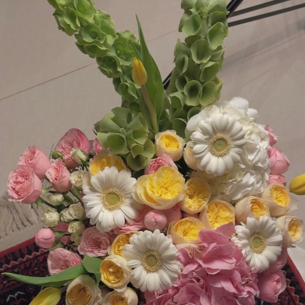 pembe gül - 30 adet beyaz papatya - 10 adet sarı gül - 20 adet