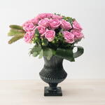 pembe gül - 25 adet siyah vazo - 1 adet okeliptus - 4 adet