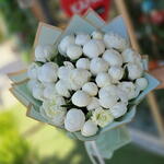 Bu özel çiçek buketi, 33 adet beyaz şakayik çiçeği içerir. Algıları uyarır ve bir lüks ve sofistike his verir. Bu zarif buket, herhangi bir mekâna sakin ve büyüleyici bir dokunuş katar. Perfekt görünümü ve tazelik hissi, en sevdiklerinizin kalbine mutluluk ve huzur getirecek. Bir düğün, doğum günü veya sadece sevdiğiniz kişiye ne kadar değer verdiğinizi göstermek için ideal bir hediye.