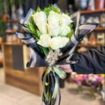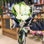beyaz gül - 9 adet yeşillik - 6 adet