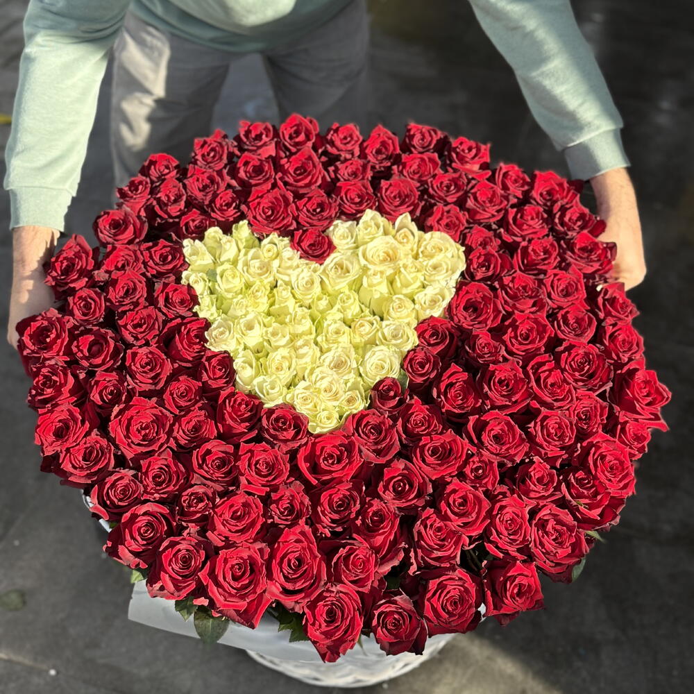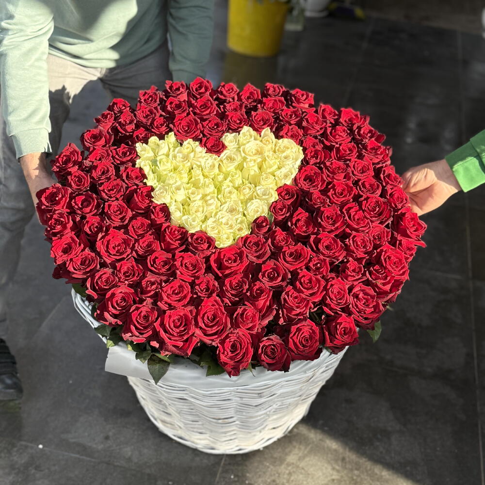 Basket - 1 adet roses white - 41 adet roses red - 111 adet