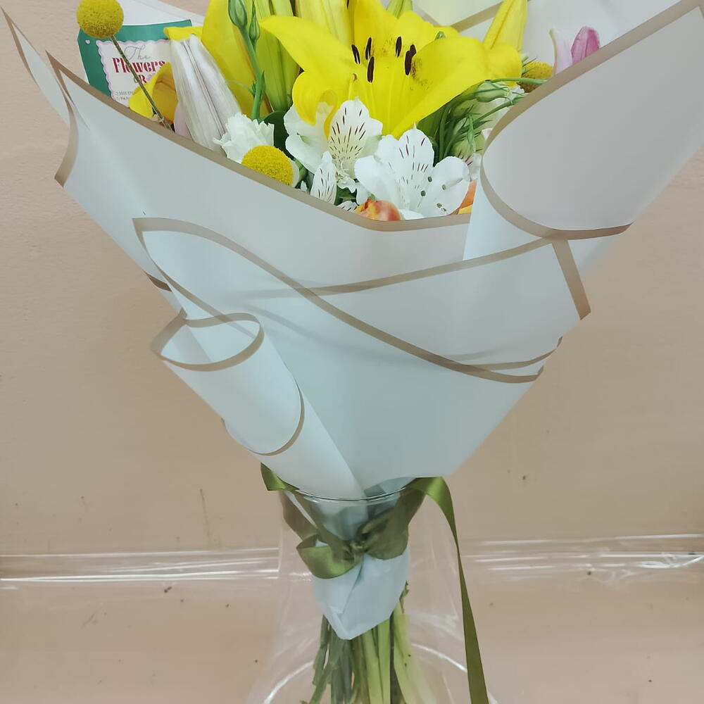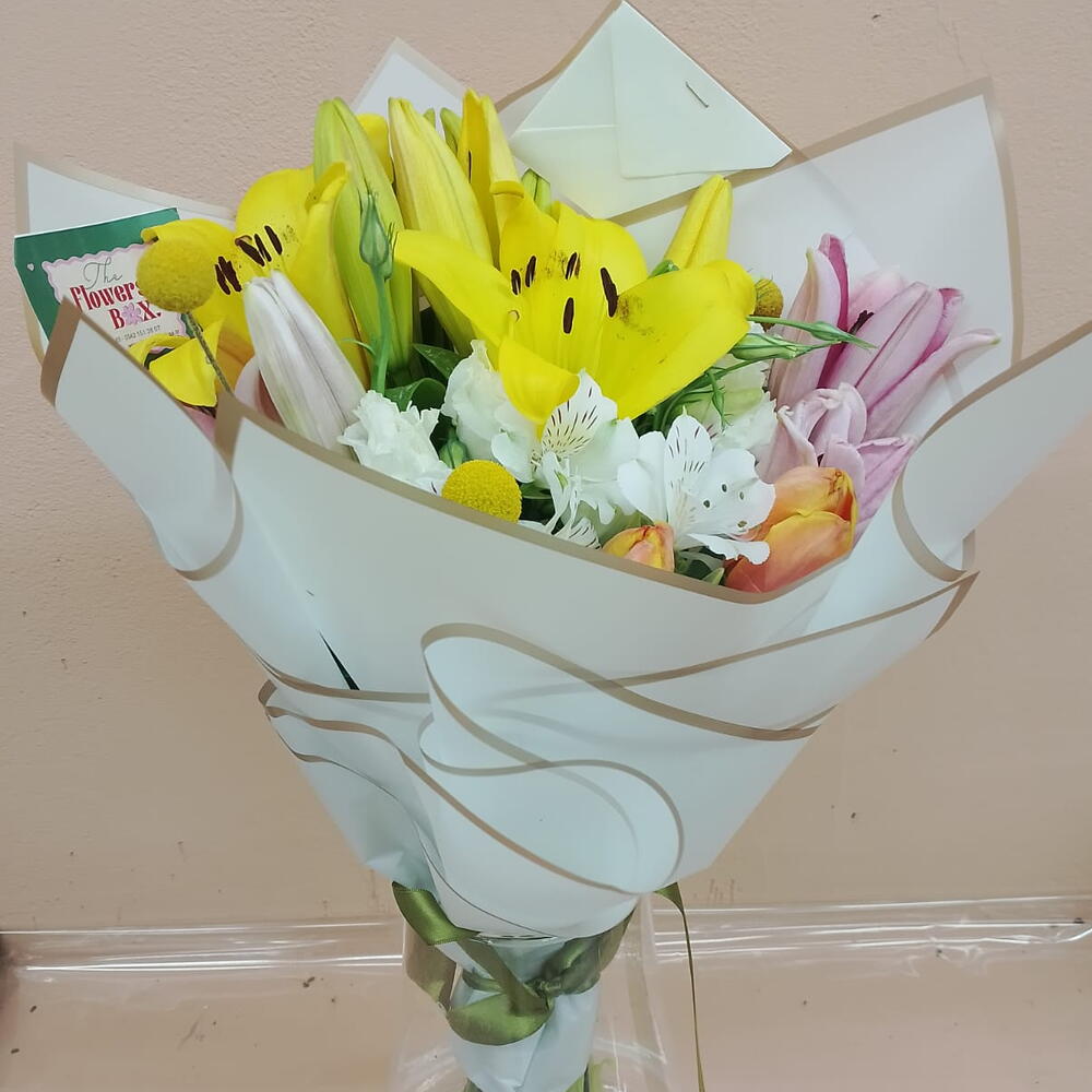 lilyum pembe - 2 adet lilyum sarı - 5 adet astemeria - 5 adet