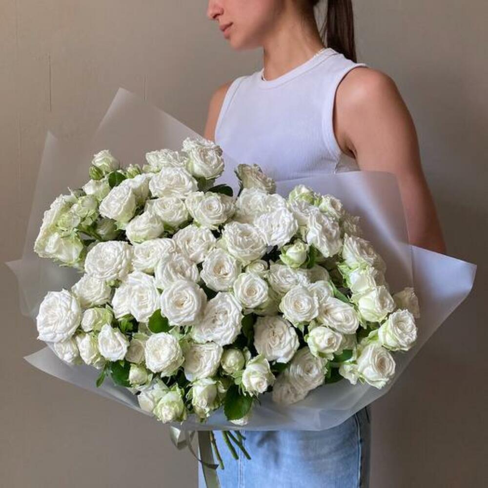 Beyaz şakayık sprey güllerden oluşan bir buket, rafine zevke sahip insanlar için, tebriklere ek olarak veya sadece moralinizi yükseltmek için harika bir hediye olacaktır. Not : Mevsim şartlarına ve stok durumuna göre renk tonlarında ufak değişiklikler olabilir.