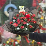kokina çiçeği - 12 adet kalp çubuk - 1 adet ayıcık mini oyuncak - 1 adet