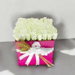 Şıklığı ve zarafeti bir araya getiren bu özel kutuda beyaz güller, saflığın ve masumiyetin en güzel yansımasıdır. Pembe kutu içinde özenle yerleştirilen beyaz güller, şık beyaz kurdele ve kuru başak süslemeleriyle tamamlanmıştır. Sevdiklerinize özel günlerde, tebriklerde ve romantik anlarda zarif bir hediye sunmak için mükemmel bir seçim!