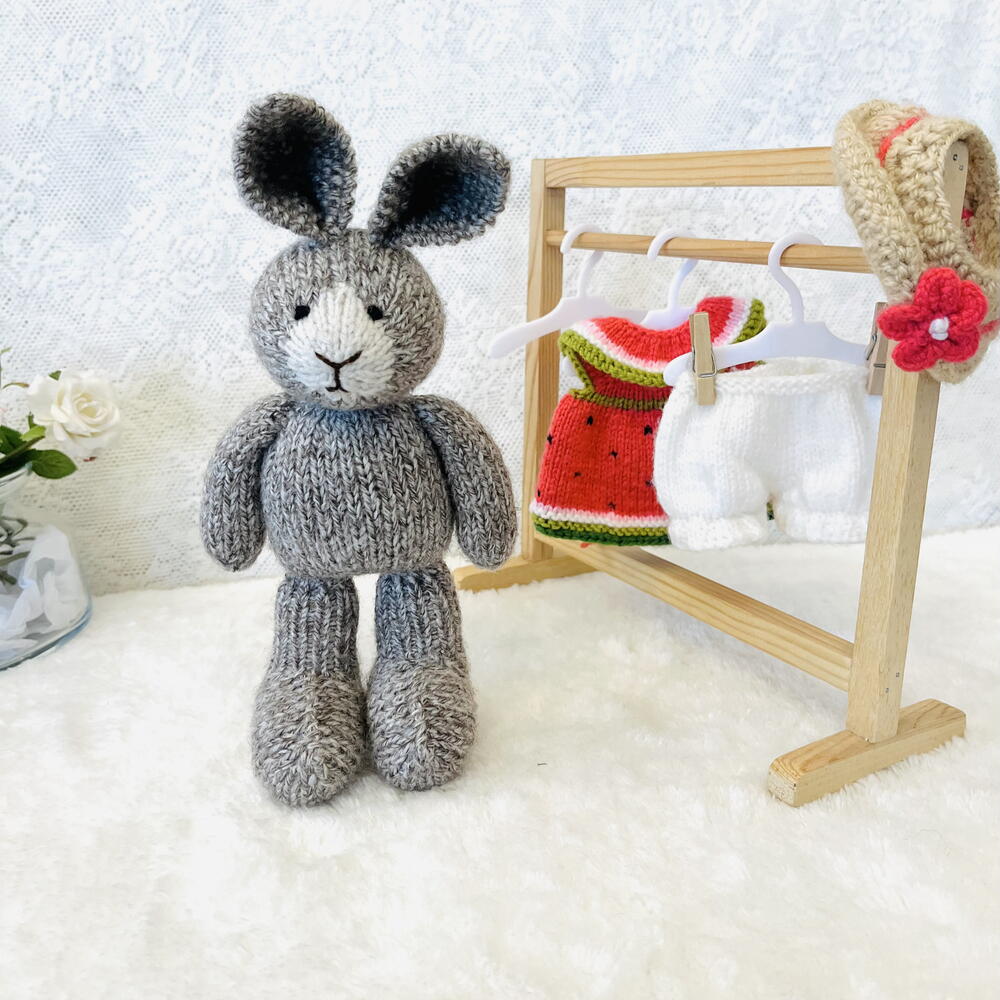 Bebeğiniz için tamamen güvenli ve doğal bir oyun arkadaşı! Bu set, kaliteli Alize iplikleri kullanılarak, tamamen el emeği ile özenle hazırlanmıştır. Güvenlik: Gözler ve yüz detayları el işlemesi (nakış) ile yapılmıştır. İçerik: 1 adet tavşan, fırfırlı külot, yakalı elbise ve şapka. Kıyafetler çıkarılabilir.