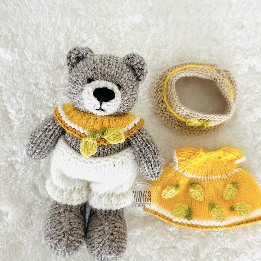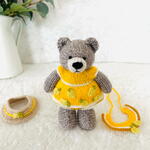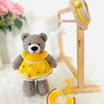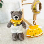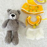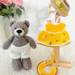Bebeğiniz için tamamen güvenli ve doğal bir oyun arkadaşı! Bu set, kaliteli Alize iplikleri kullanılarak, tamamen el emeği ile özenle hazırlanmıştır. Güvenlik: Gözler ve yüz detayları el işlemesi (nakış) ile yapılmıştır. İçerik: 1 adet ayıcık, fırfırlı külot, elbise ve şapka. Kıyafetler çıkarılabilir.
