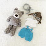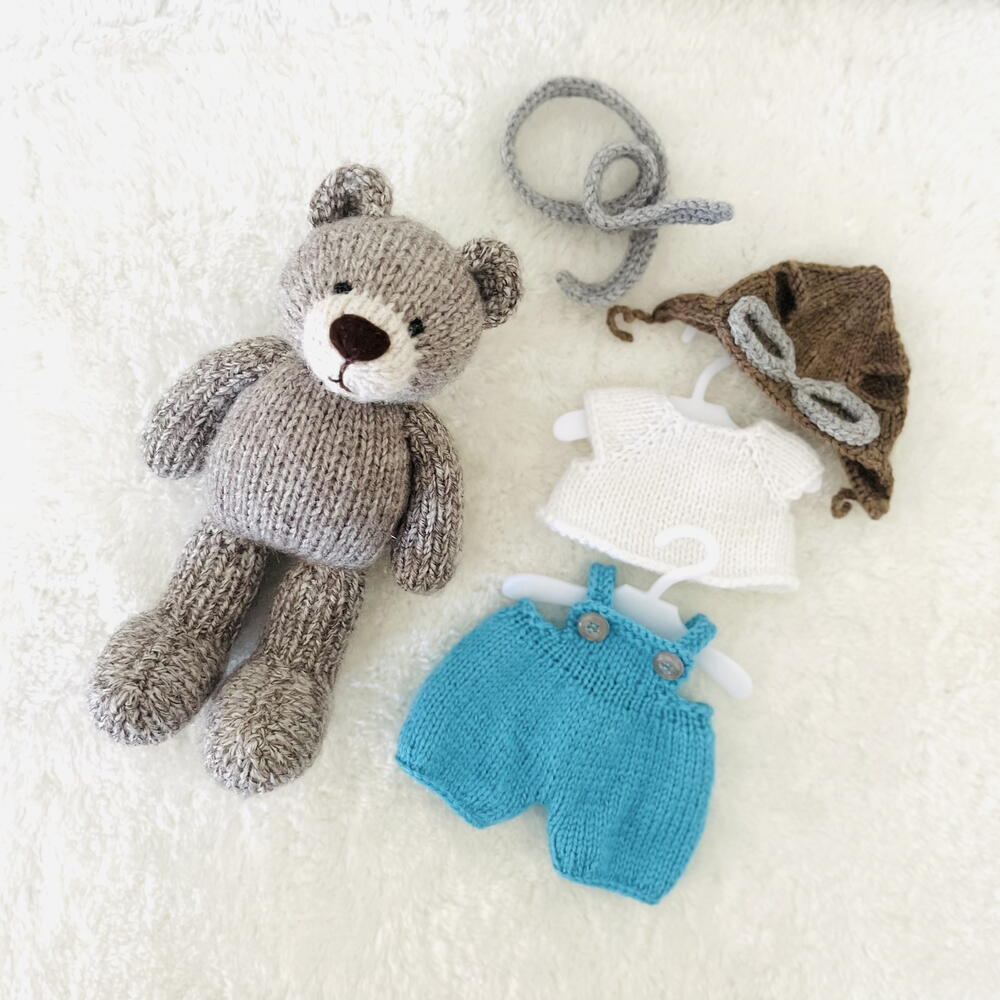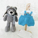 Bebeğiniz için tamamen güvenli ve doğal bir oyun arkadaşı! Bu set, kaliteli Alize iplikleri kullanılarak, tamamen el emeği ile özenle hazırlanmıştır. Güvenlik: Gözler ve yüz detayları el işlemesi (nakış) ile yapılmıştır. İçerik: 1 adet ayıcık, tşort, tulum, atkı ve Pilot şapka. Kıyafetler çıkarılabilir.
