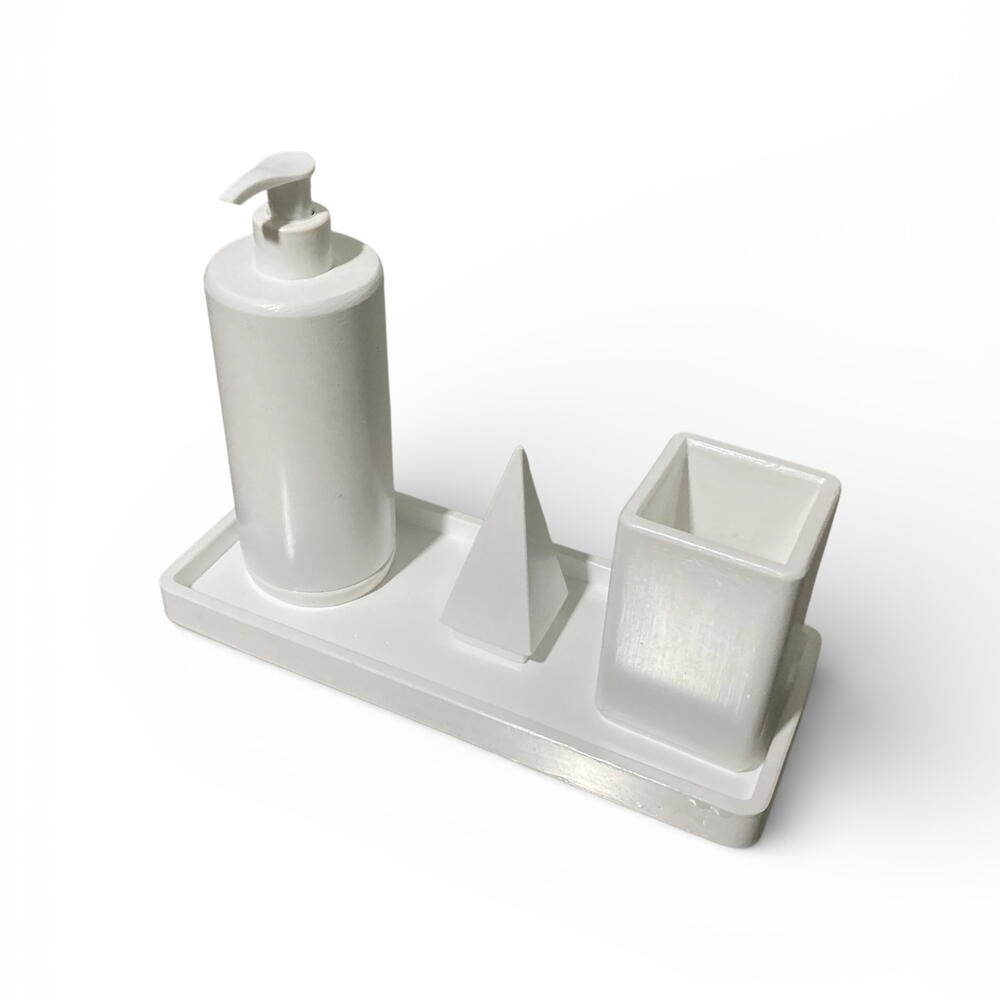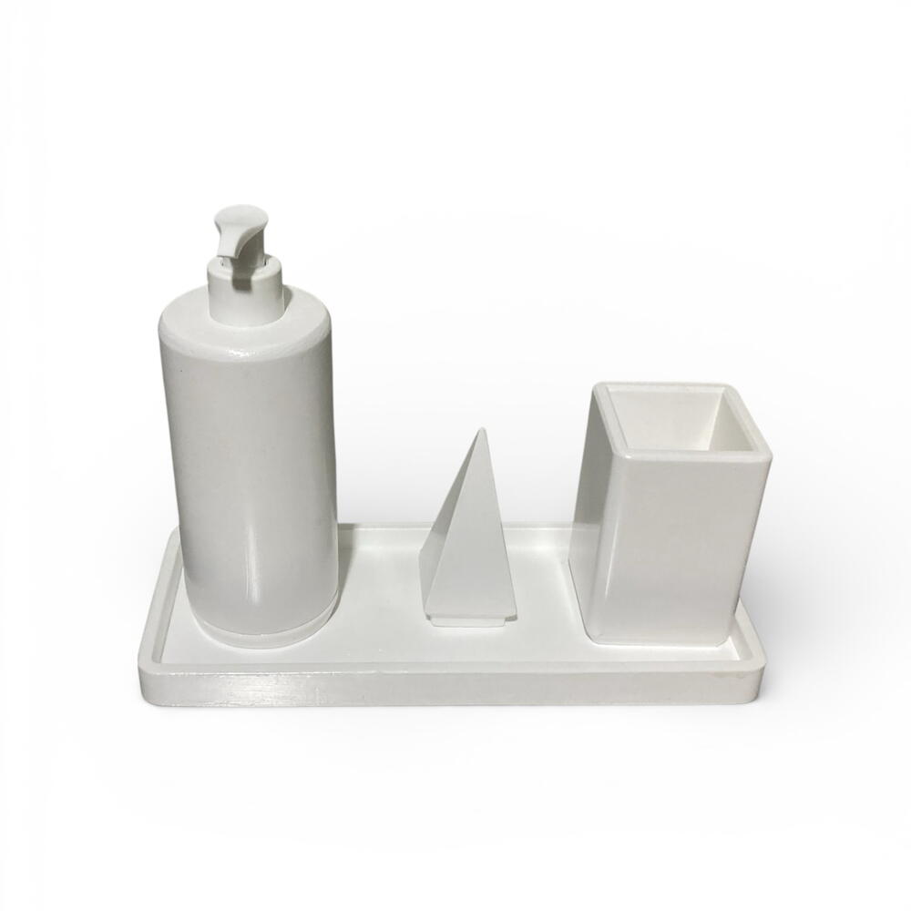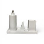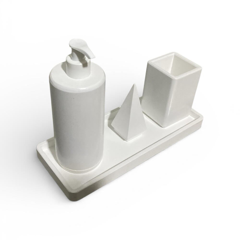 4 Parça Vernikli Taş Tozu Banyo Aksesuar Seti - Beyaz Banyonuzun havasını değiştirecek, dayanıklı ve estetik bir set arıyorsanız doğru yerdesiniz. Taş tozunun doğal dokusunu, koruyucu vernik ile birleştirerek uzun ömürlü bir kullanım sunduk. Set İçeriği: • 1 Adet Sıvı Sabunluk: Şık beyaz pompa detayıyla. • 1 Adet Diş Fırçalık: Geniş hacimli ve estetik. • 1 Adet Dekoratif Piramit Obje: İster yüzük standı olarak kullanın, ister dekoratif bir dokunuş olarak. • 1 Adet Sunum Tepsisi: Tüm parçaları bir arada tutan, düzenleyici altlık.