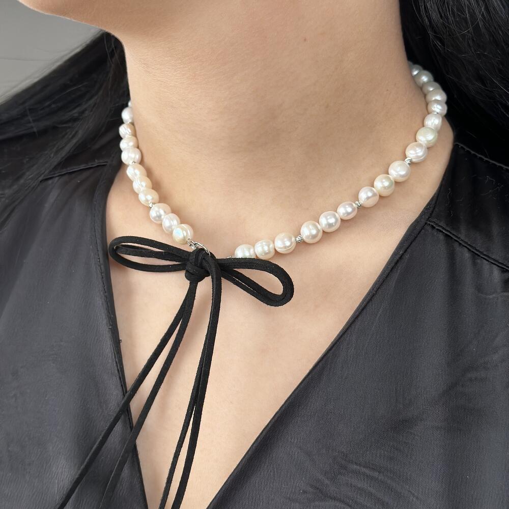 Natural pearls Suede ribbon Stainless steel