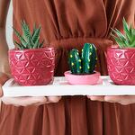 Pembe Üçgen figürlü saksısıyla Howartia aranjmanı tam size göre! Evinize ve iş yerinize modern saksılarla daha farklı bir hava katabilir, şık bir ortam oluşturabilirsiniz. Minik tırtıkları, kendine has formu ve şık saksısıyla hediye konusunda farklı bir tasarım arayanlar için muhteşem bir seçenek.