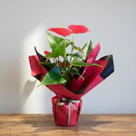 Zarif kırmızı çiçekleri ve parlak yeşil yapraklarıyla anthurium, bulunduğu her ortamda şıklığı ve zarafeti ön plana çıkaran özel bir bitkidir. Modern tasarımı ve göz alıcı renkleri sayesinde hem hediye olarak hem de yaşam alanlarına dekoratif dokunuş katmak için mükemmel bir tercihtir. Uzun süre kalıcı çiçekleri ile dayanıklı bir seçenek olan bu bitki, doğru koşullarda yıl boyunca çiçek açmaya devam edebilir.